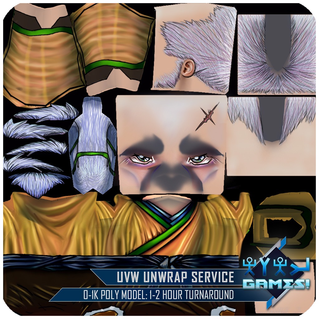 - If you would like the Character Model Conceptualized, Constructed, Textured, Sculpted, Rigged (Head), Rigged (Body), Skinned, or Animated, additional charges apply per listed category. This listed price is for UVW Unwrap ONLY.