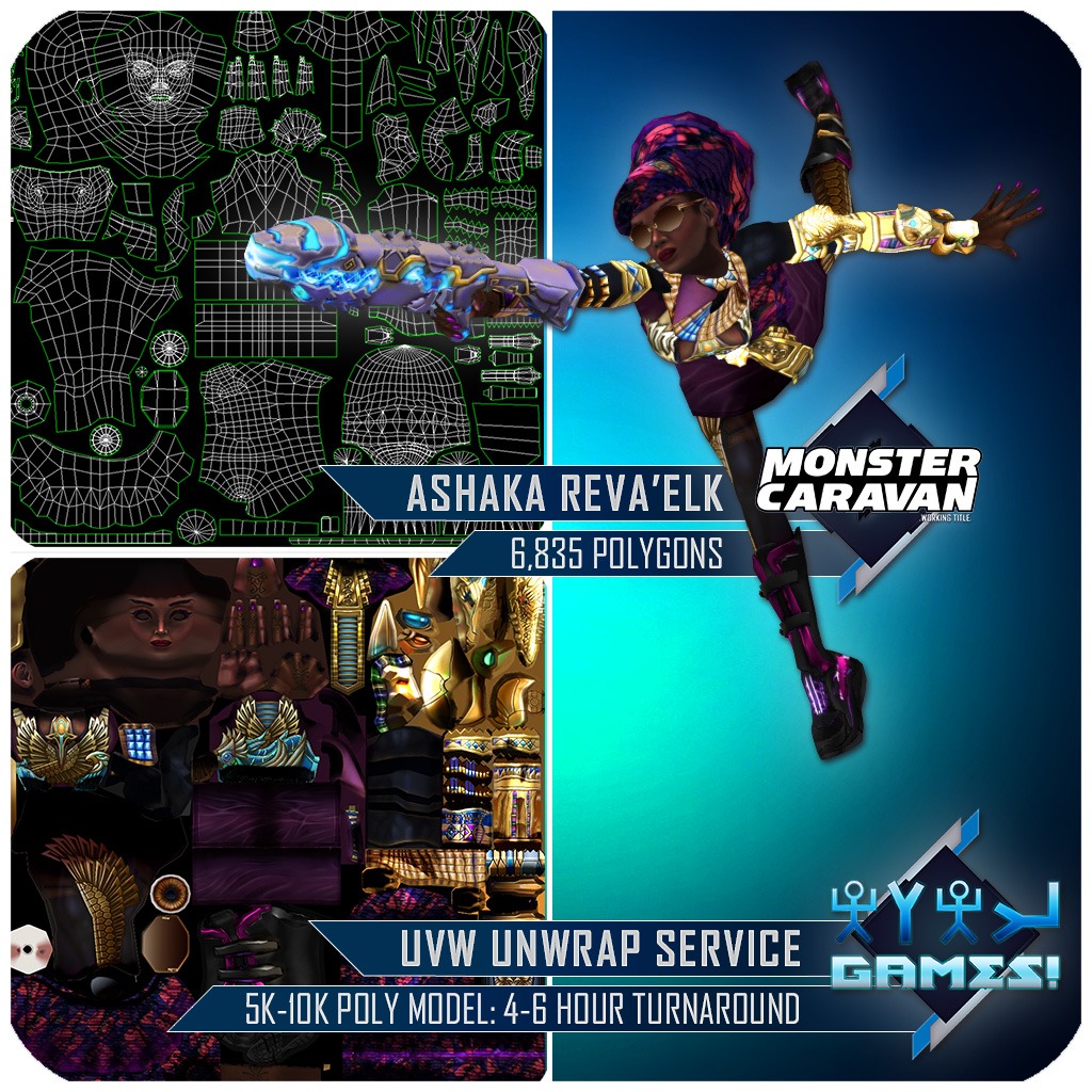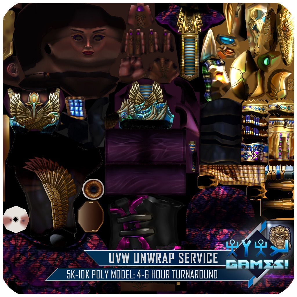 - If you would like the Character Model Conceptualized, Constructed, Textured, Sculpted, Rigged (Head), Rigged (Body), Skinned, or Animated, additional charges apply per listed category. This listed price is for UVW Unwrap ONLY.
